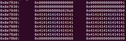 그 후, 2번째 청크를 free 해보자. 원래는 0x8e70b0을 해제해야하지만 double free 버그가 뜨면서 되지 않았다. 그래서 7140 → 70b0을 해제할때는 잘되었다. 왜 그런지는 좀더 공부해봐야겠다.