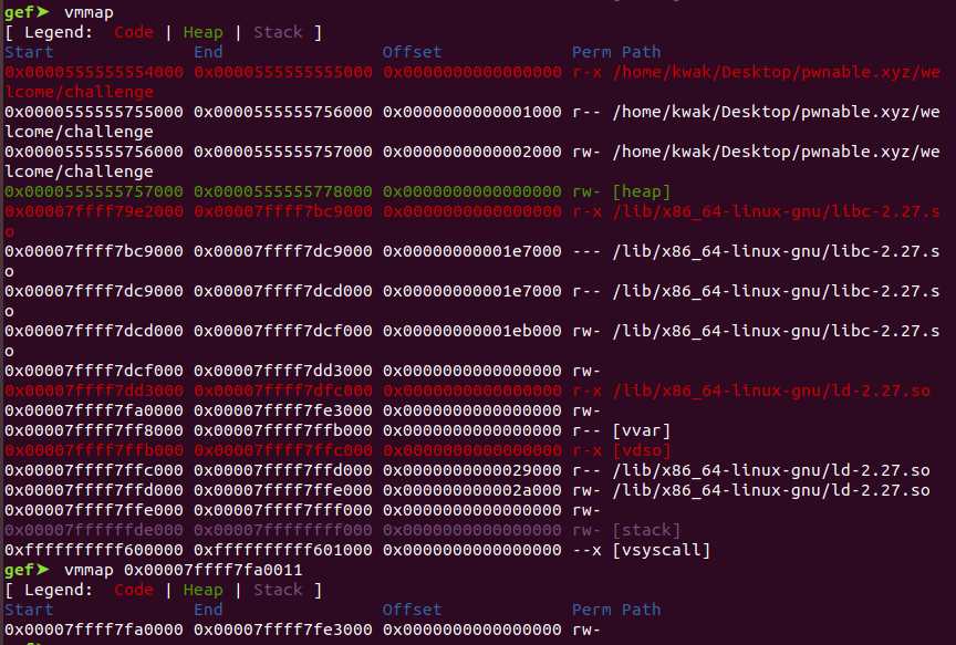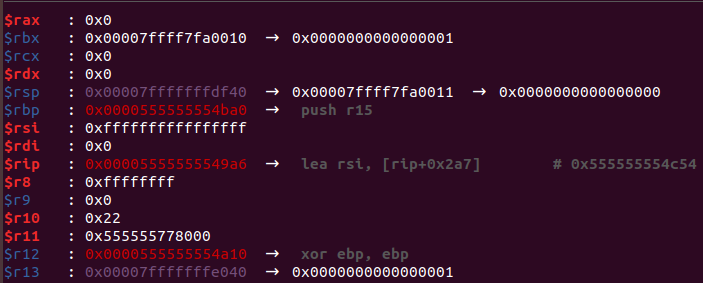 rsp가 가리키는 주소의 값이 0임을 확인할 수 있다 또한 heap이 아닌 다른 주소에 할당됨을 볼 수 있다.