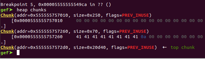 그럼 이러한 주소에 0이 저장되는데, 이 주소는 top chunk의 주소이다